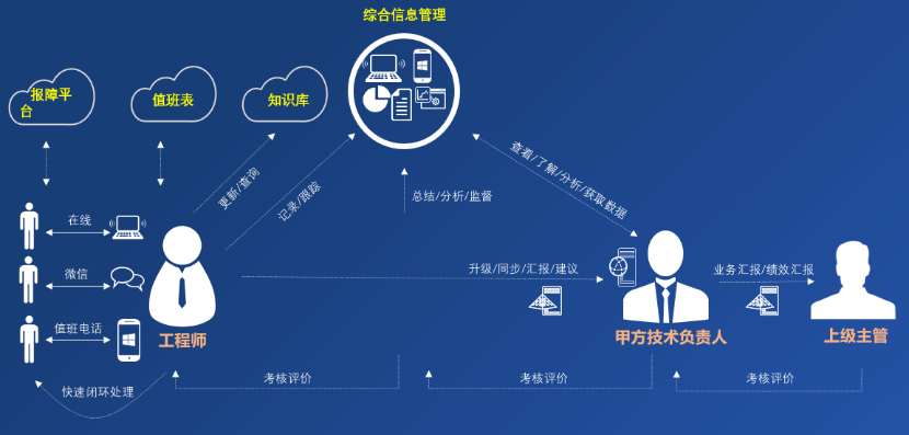 针对全校师生用网问题,尊龙时凯为佛科部署运维管理平台,提供微信、电话等多种保障通道,可实现自动派单及工单流程可视化管理,让师生用网问题得到及时受理及快速服务响应;知识库功能则使学校的运维技术经验得以有效沉淀,成为提升学校运维效率的重要依据。此外,问题处理闭环、满意度评价以及人员绩效可视化管理,实现师生服务体验和运维人员的工作成效“看得见”。