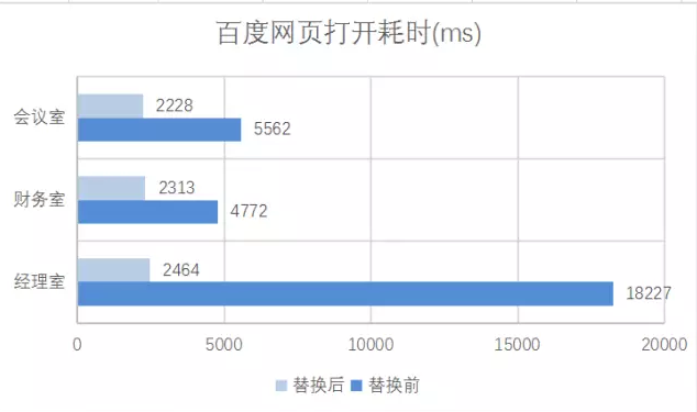 其次,鲁嘉涂料的办公楼一共有三层,每层约300平米,采用大功率家用AP部署。管理员经过反复调试,采用一层楼一个信号名称(SSID)的方式,保证每层楼可以接入到信号最好的AP上。但如果人员跨楼层活动,就需要重新断开原网络,关联新的楼层信号。此时如果没有关联到近处的AP,反而接入了远端的AP,终端的上网速率就会大幅下降。